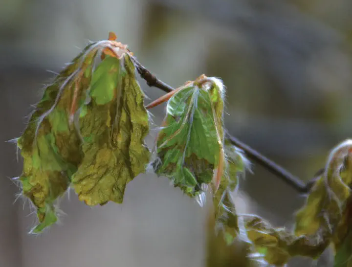 Frost damage on unfolding leaves of beech in Zugerberg (Bigler & Bugmann 2018)